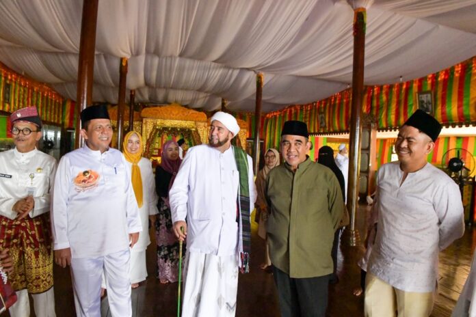 Gubernur Kepri Ansar Ahmad mendampingi Ketua MPR RI Ahmad Muzani dan Habib Syech Bin Abdul Qadir Assegaf saat berada di Balai Adat Pulau Penyengat, Jumat (14/11/2025). (Foto: Biro Adpim Kepri)