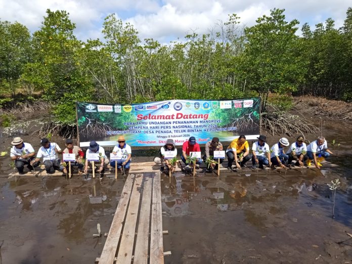 AlurNews.com – Sempena peringatan Hari Pers Nasional (HPN) 2026, Komunitas Jurnalis Kepri (KJK) menggelar kegiatan penanaman mangrove di Kampung Sungai Tiram, Desa Penaga, Kecamatan Teluk Bintan, Provinsi Kepulauan Riau (Kepri), Minggu (8/9/2026) pagi.